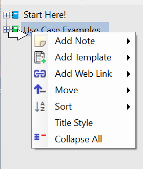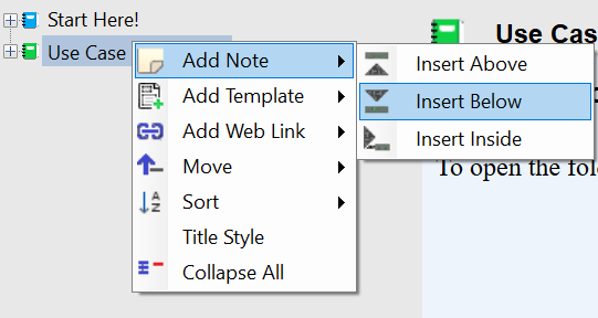 Click on “Add Note” (or “Add Web Link”, or “Add Template”) and select where you wish to create the new Note: