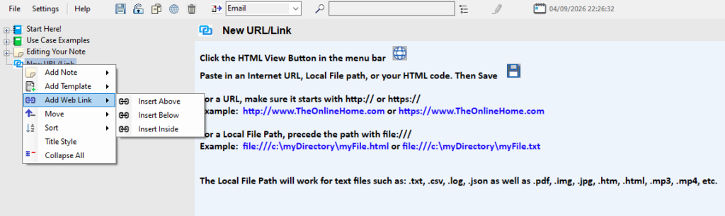 Web Links can also be used to run a local HTML code, with Web Links, the HTML code view is directly editable.