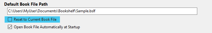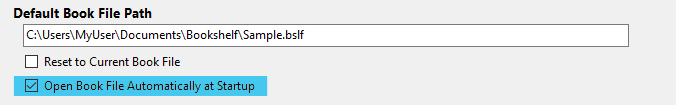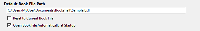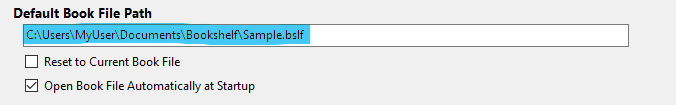 Default Book File Path: This is where you can set the default Book File (.bslf file) when the application starts: