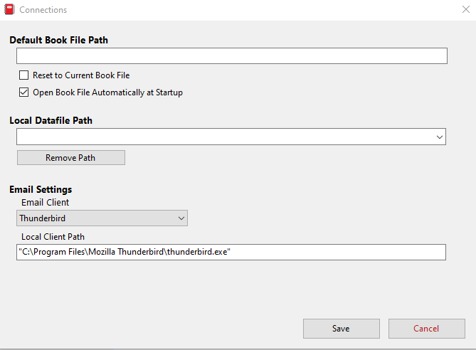 Local Datafile Path: This is used to set the path for custom datafiles (.bdbf files) that you can access through Bookshelf. A Customer Relationship Management (CRM) Database example is available download and test.