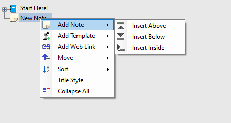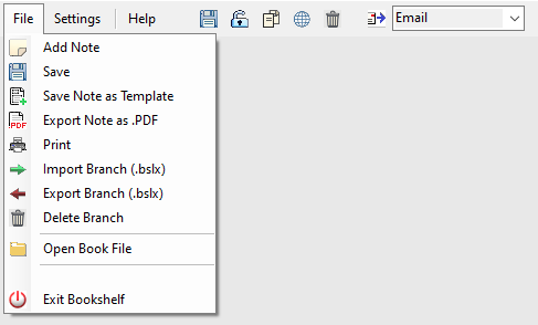 Click on the File menu to Print your note, Export as a .PDF file, Save as a Template, or Import/Export/Delete a branch