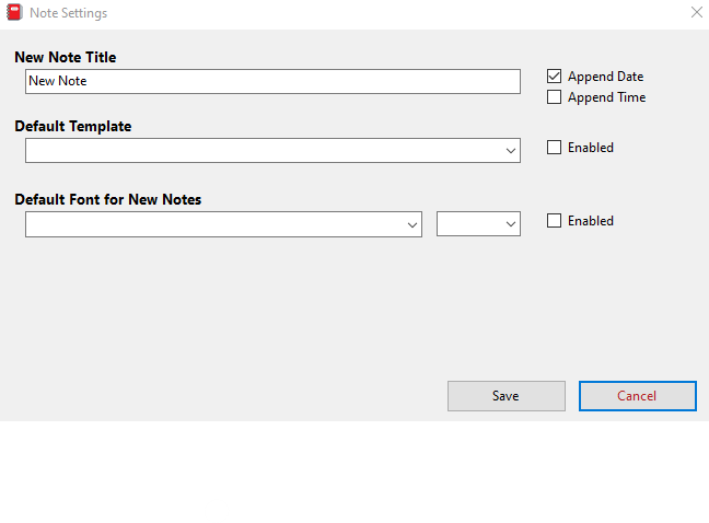 In the “Note Settings” you can set your default note title for new notes, select a default template to use for new notes, as well as a default font.